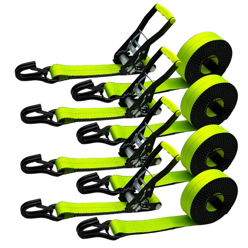 Renegrip 4 Pack 2" x 27' Ratchet Straps with J-Hooks 10,000 lbs Breaking Strength - 3,333 lbs Working Load Limit - Heavy-Duty Fluorescent Green Polyester Webbing, Zinc Plated Ratchet with Ergonomic Grip for Truck, Trailer, Motorcycle, Furniture Moving